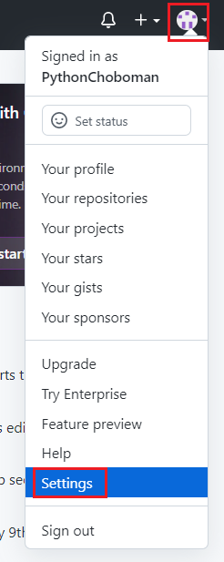 - git 페이지에서 Settings에 접속