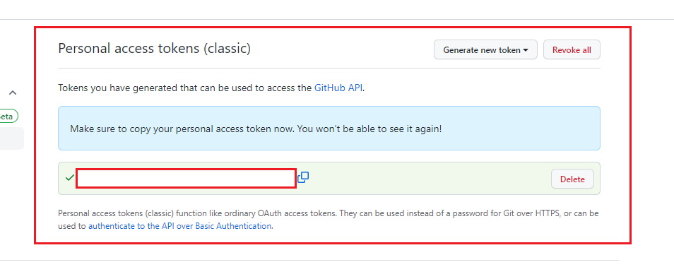 - 따라서 personal access token을 생성해서 password로 사용해야 한다.