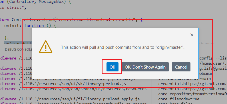 - [hello.view.xml]과 [hello.controller.js]의 pull 결과 확인