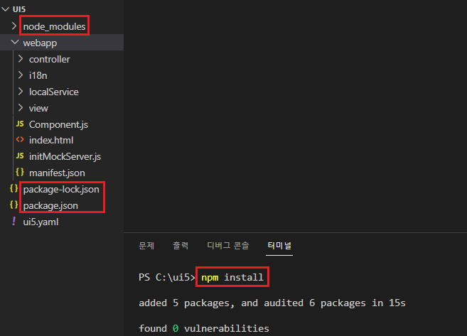 - VSCode에서 폴더를 불러온 후, 'npm install'을 통해 'node_modules' 및 'package.json'을 설치